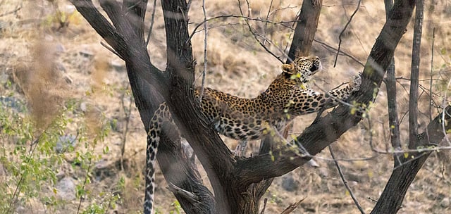The first morning went in an initiation into the lay of the land, and while we chanced upon the lower rungs of the food chain, I met the unlikely and only creature in Jhalana who regularly exploits the leopard&rsquos cache the rufous treepie, a relative of the friendly urban crow, bold enough to pick at carcasses oblivious to the bigger mouth barely a metre away. This is in part due to prey being aplenty, and while blue bulls in their prime might be a tad too strong, the young and the failing make for easy pickings, supplemented by generous portions of peafowl. The forest department has had limited success in introducing the chital, but other decisions, again with varying degrees of success, have now started yielding unforeseen consequences.