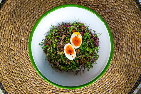 4 eggs &ndash 2 soft-boiled to garnish