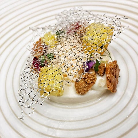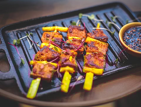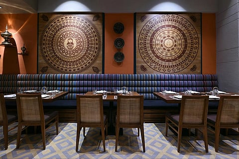 To pacify my taste buds on fire was a platter of three Burmese salads. As someone who often steers clear of leafy things, I was in for a surprise. The first of the trip was a tangy salad, with shredded raw mango with red chilly powder and crushed peanuts. You could call it the kimchi salad of Burma Burma. To my sensitive Indian palate, however, it was reminiscent of the jhaalmudi I&rsquod had folded in a newspaper cone on the streets of Calcutta, albeit with an Asian twang. The others were a tea-leaf salad and one with sunflower leaves and wheat flakes. Laphet is a fermented tea leaf variety grown abundantly in Myanmar, and in often makes its way into the kitchen, to be brewed into tea, had as a meal with potatoes or in this case, feature as the green star of a salad.