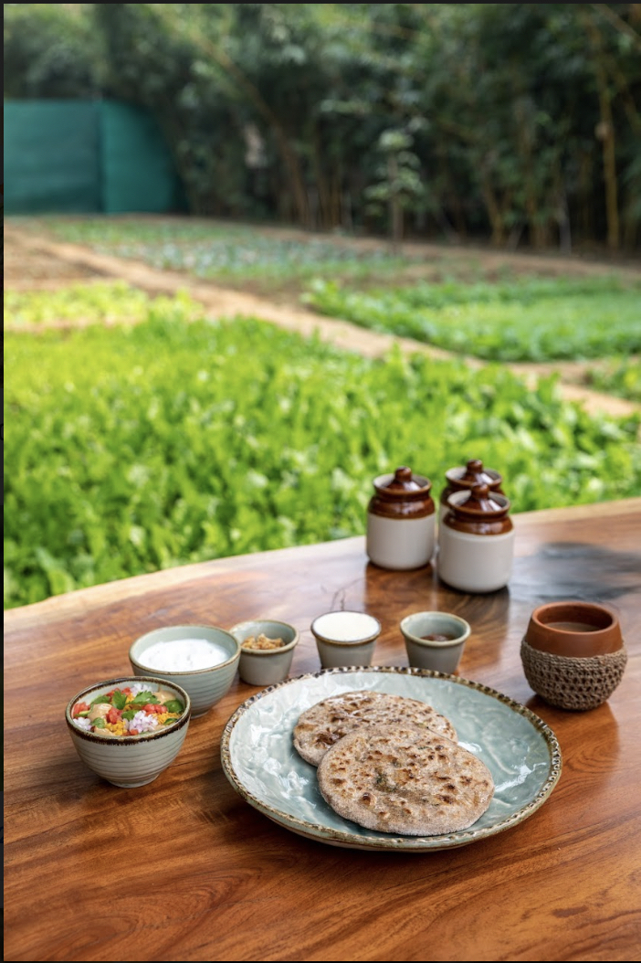 They celebrate culinary emotions at Under The Neem, which serves a cuisine designed by Chef Gajendra Singh Chauhan himself. With a vegetable garden next door, they obtain most of their food in-house and from Sabz Bagh. The farmer, rather than the chef, controls the menu when using locally sourced seasonal products. Some diners remark they can taste the freshness and flavours of the produce in every bite.