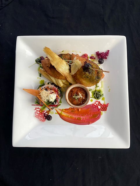 Mixed Vegetable Panzerotti with French Fries and Festive Greens