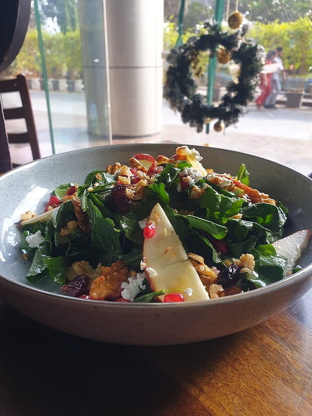 Ingredients- Half apple Juice from half lemon Green Lettuce 120gms Red Onion ¼ Dried Cranberries 25gms Feta Cheese/ Goat Cheese 2 Tbsp Butter 30 gms Walnut 100 gms White Sugar 40gms Pomegranate 10gms