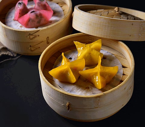Wooden flooring, a Chinese round symbol used as a design motif, black walls and panels to provide a sense of space, effective use of spotlights and the drama they bring, and, of course, the sprawling view of the city&mdashthe décor done by Unorthodox Designs treads a fine line between the classic and the contemporary. This interplay is visually appealing, even if I found the bar with its flame texture a bit garish (though I liked the mural of a Chinese woman wearing a cheongsam in the background). The menu retains Royal China&rsquos old favourites, so your deep-fried wonton wishes will still come true, but it is a fruitful endeavour to explore the new. Take, for instance, these two dumpling varieties crab meat, and corn and water chestnut. Both present unique ingredients, even by mum&rsquos standards (she has made bacon-wrapped chicken dumplings at home). Our verdict on them was positive especially with the soft corn and the crunchy chestnut, and the not-fishy-at-all and flavourful crab meat.