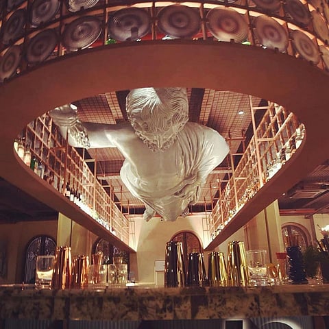 The heart of the restaurant beats around the 100-feet long island bar over which hangs a statue of the Greek god Zeus. When you are in Olterra (The Land of Beer in Greek), you eat, drink and make merry like the gods, a friend added with a smile. However, the owners &ndash brothers Rudresh and Siddhant Agarwal &ndash have played it safe with the bar and food menu, and kept it global.