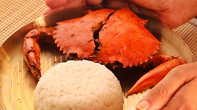 Chimbori Che Khadkhadle is a coveted mud crab-based dish. The name comes from the rhythmic clanging sound of the crab shells against the walls of the kadhai ("cauldron," in which the dish is made). Usually, female crabs filled with orange roe are preferred over the males to make this dish.