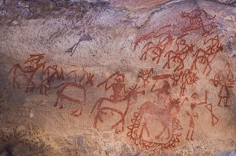 Situated at the foothills of the Vindhya range in central India, the rock caves are believed to be the oldest petroglyphs in the world, dating back to the Paleolithic and Mesolithic periods when humans had a hunter-gatherer life. The rock art and relicts depict these traditions, some of which are still practiced by the local adivasi people of the region.This UNESCO World Heritage Site was accidentally discovered by archaeologist Dr. Vishnu Wakankar in 1957.