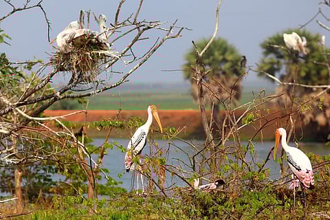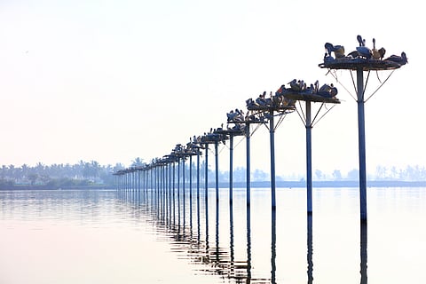 Kolleru lake in Andhra Pradesh, is humming with the activity of about a million migratory birds. This year, has been a windfall of sorts, as the teeming Kolleru, a Ramasar conservation site, spread over 308.55 square kilometeres, gets its fill of the winged visitors. The Kolleru lake is the largest fresh water body in the country. Set between the deltas of the rivers Krishna and Godavari, to which it is joined via 67 channels, the lake also receives seasonal water from the rivers Budameru and Tammileru.