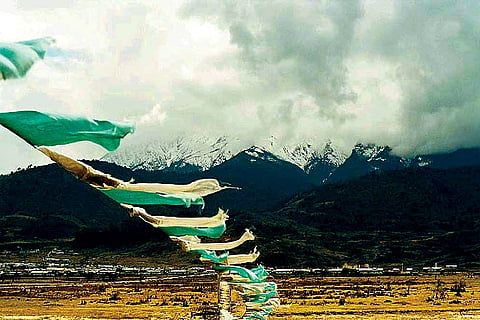 The next morning we were determined to reach Mechuka before mid-day, and set off early. The hillsides turned into enchanted forests with moss covered trees and the first flowering trees we had seen thus far, as the vegetation turned from Tropical to Alpine. And we saw the tantalizing, first snow covered peaks. After a five hour drive, we reached the end of the road, and loaded our bags onto donkeys. I am not sure how to describe the next part of our journey, it&rsquos hazy and dreamlike, which is what it felt like at the time too. We walked for an hour along the most spectacular riverbed, across tiny wooden structures which enabled us to cross streams and as the valley opened up what awaited was astonishing.. A flat table-land at 6,200 ft (1890 m), surrounded in a horse-shoe formation by brown, virtually treeless, hills ringed beyond by the most incredible sight of the snow covered Eastern Himalayas.