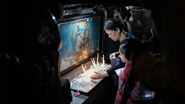 Cairo sits at the heart of this sacred geography. In Matariya, Mary’s Tree, a weathered sycamore, is said to have shaded the Holy Family as they rested. Nearby, a well believed to have quenched their thirst has been restored, while the tree itself is now protected behind railings to prevent pilgrims from breaking off leaves as talismans. In nearby Coptic Cairo, the fourth-century Church of Abu Serga marks one of the family’s longest stays. Its crypt, reached by steep, narrow steps, contains a small cave where they are believed to have lived for three months. The space is spare and atmospheric, equal parts archaeological site and prayer room, filled with murmured hymns, candle smoke and the quiet click of cameras.