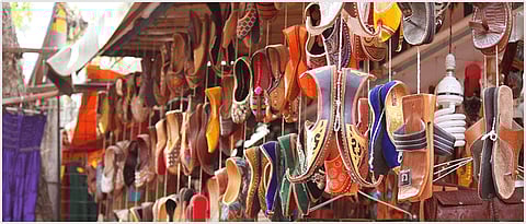 Mojari jutis- Sequined, threaded, and multi-hued&ndash the range of footwear that you can find in the sprawling markets of Pushkar is without limits. Buy a snazzy pair of sequined jutis or one in a single bold colour.