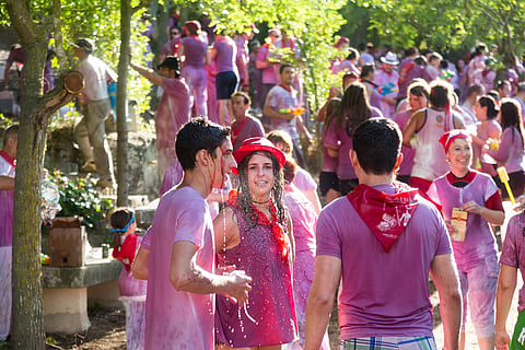 The Haro Wine Festival, also known as La Batalla del Vino, is a famous festival in Spain. Like the Tomatina Festival, La Batalla del Vino involves a wine battle. In this competition, participants split into two teams and throw litres of red wine at each other. The Haro Wine Festival takes place every year on July 29. According to legends, the festival began as a territorial dispute between Haro and one of its neighbouring villages, Miranda de Ebro. Over the years, the Haro Wine Festival evolved into an activity of hurling wine.