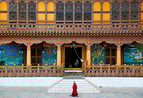 Up in the mountains of Bhutan, there comes a time, every so often, when heavy mist rolls in and blocks everything from view. That time is now. We pull over under an overhanging rock, and take off our helmets, gloves and boots. We are in no hurry to get anywhere.