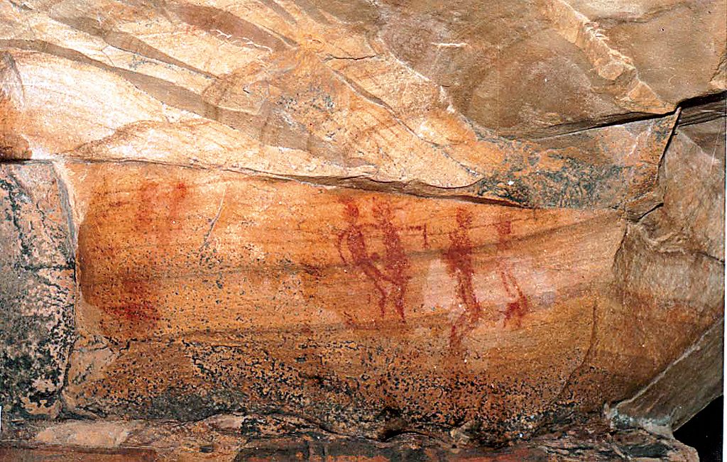 In an exploration conducted in the year 1994-95 by archaeologists more than a dozen rock painting sites have been discovered in the Kaimur district. On the Kaimur hill the sites are at Mokwas, Patesar, Jhapia hill in the Chand block, Badki Goriya in the Makarikhoh valley in Bhagwanpur block besides Dugha, Hathiadag, Sarodag, Chaya, Badap Gaura hill, Rauta and Kokhargada in the Adhaura block which is located on the Kaimur plateau. In most of these sites as Badap, Chaya, Patesar there are more than one rock shelters having paintings. The discovery of these rock paintings are important in the archaeological perspective since the Kaimur plateau and hills have had been comparatively unexplored by archaeologists and the historians. It may be mentioned that ever since the discovery of the rock paintings in Bhimbetka, Madhya Pradesh, in 1957, great interest has been taken by archaeologists and scholars in discovering rock painting sites in different parts of India. In Bihar also some positive efforts have been made in recent times by some scholars in this direction as a result of which rock paintings have been found at many sites in Nawada, Jamui and Rohtas districts in Bihar. So far as the rock paintings in the Kaimur district are concerned it appears that, in spite of some distinctive features, their nature, style and content as compared to those in other rock painting sites of India, more particularly in the Mirzapur district of Uttar Pradesh, have certain remarkable similarities.