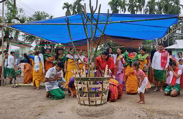 There is another interesting aspect to the Bwisagu festivities that takes place on the first day, also known as &lsquoSankranti.&rsquo A large number of devotees undertake Baukhungri Hajw Gakhwnai or the climbing of Baukhungri Hill, near Kokrajhar. This is considered to be a highly auspicious place and the trekkers pay obeisance to the mighty Bwrai Bathau at the thansali or shrine atop the sacred hill.