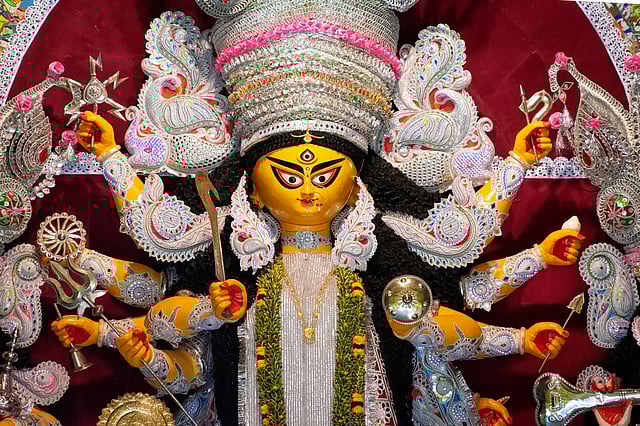 About 50km north of Kolkata, Chandannagar, which was also a French colony in the yesteryears, is better known for its Jagaddhatri Puja (an incarnation of Durga and held almost a month later). But if you look around, the old township has many traditional households celebrating Durga Puja for centuries. The Bose Bari Durga Puja (in Khalisani area) is over 500 years old. With reverence to their family deity of Madanmohan (Krishna), Vaishnav rituals are followed for Durga Puja too.