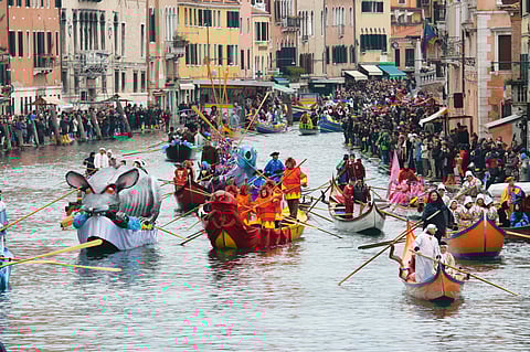 Think gondolas with lively music, think piazzas burgeoning with people, and think elaborate Venetian masks. From the mid of February, everyone is in a party state of mind in Venice, most of all the Venetians, thanks to the start of the yearly extravaganza&mdashthe Venezia Carnevale