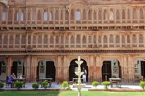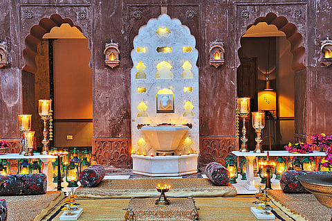 The car was turning just as the red ball of fire dissolved. The sky burst into shades of red and purple. The circle of lanterns in the distance beckoned and we walked towards the brown and silver charpoys. A glass of champagne in our hands, we watched the clouds churn the colours, the reds and purples melting into darker shades. Suddenly, the chug of a train attracted our attention, the red compartments adding some colour to the yellow and green patches of coarse grass and small shrubs. And then the sky lost its shades and only the little lanterns brightened up the dark night. The moon was watching our retreat to the cosy makeshift sitting area.