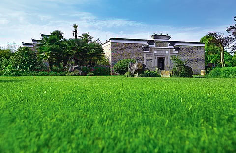 The stunning exterior of an antique villa at Amanyangyun
