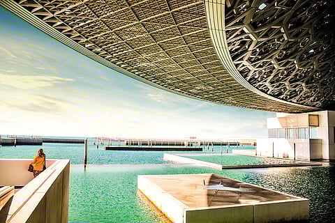 The Louvre Abu Dhabi leaves you awestruck even before you&rsquove entered. Its massive silver-grey dome glistening among the tranquil aquamarine waters of the Arabian Gulf is a sight to behold. Under that spaceship-like dome&mdash180 metres in diameter and perforated by multilayered latticework that lets sunlight filter, casting abstract patterns on the floor and the walls&mdash you feel as though you have been transported to another realm altogether. A union of traditional Arabic design and modernism by architect Jean Nouvel, it serves as the perfect sanctuary for precious treasures.