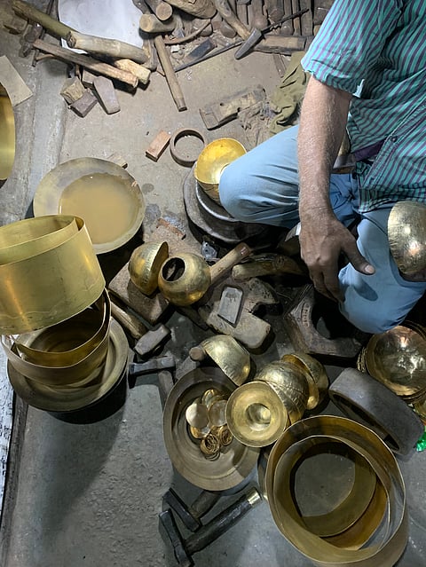As I make my way through the narrow bylanes of Jandiala Guru, a quiet town on the outskirts of Amritsar, the bustling cultural and religious epicentre of Punjab, the "thak thak" sounds of karigars clanging away at metal sheets lead me towards my destination&mdashBazaar Thatherian. The Thatheras is a hard-working community of artisans who have been manufacturing brass and copper utensils in this nondescript town for over two centuries. Sadly, the hammering sound&mdashan aural experience synonymous with Jandiala, is gradually dimming.