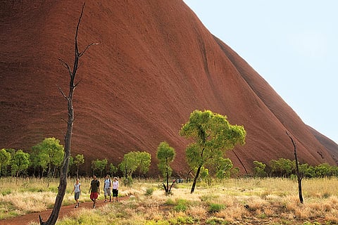 There&rsquos a faint breeze blow­ing, but I&rsquom perspiring nonetheless. Flies buzz overhead like a halo. But these trifling irritants are worth enduring in the Red Centre of Australia&rsquos Northern Territo­ry&mdashwhere beauty is anything but banal. An expansive view over the red desert unfurls before us&mdashlike an ornamental placemat. In the distance I hear voices ooh and aah as the sun sets over the huge red monolith that is Uluru (Ayers Rock)&ndashone of the world&rsquos most iconic rock faces of arkose sandstone, rising like a phoenix some 348 metres above the desert sand.