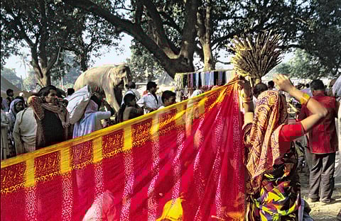 And in the devout crowds wake come they who are the life of this event the mendicants, the vendors of shiny objects, the purveyors of food, the sellers of religious paraphernalia.... Here hangs a calendar with Aishwarya on it, there lies a copy of Satya Narayan Katha cheek by jowl with a Murda Jaag Utha Theres the sadhu who has buried himself head down in the sand, with an eloquent plate holding a few coins next to him. Theres a fortune-telling parrot and a fortune-changing stone. But most of all there are the animals. Elephants, horses, bulls, oxen, goats, dogs, birds and camels. Over centuries, the mela has primarily been famous for its elephant trade in which an ensemble cast of forest departments, timber loggers, temples (especially in South India), circus owners, traders and just individuals who wanted an elephant tied at the door for prestige, have been the main buyers. It is the elephants who have always been the focus of Sonepurs attractions, and that is why Chanda is here.