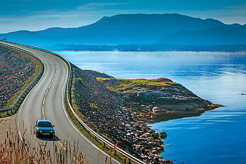 I was in Norway to track some classical mountain roads. I had started my journey in Malmö, a fractured, violence-prone industrial town in the south of Sweden, which has become an entry point for refugees into the country. The landscape from Malmö to Oslo, the capital of Norway, is flawless, unwaveringly flat, and boring, except for a few glimpses of the North Sea, which has a tendency to pop out once in a while. Peer a bit harder, and on a clear day, you might catch the outline of Denmark across the water.