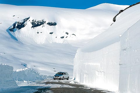 The Snow Road is a difficult drive. Most of the ascent happens on a single lane, which at times also accommodates tourist buses. But once the steep climb has been negotiated, the road widens onto a barren plateau covered in a layer of leftover snow from the previous winter. Pond-sized puddles of melted snow and sprigs of grass punctuate the landscape. It&rsquos the desolation that renders this plateau impressive.