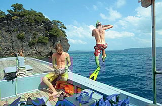 But when the steep crag of South Button Island rises out of the sea, we drop anchor. The snorkel-happy plunge in. I&rsquom not joining our fellow travellers on this last lap because I, um, can&rsquot swim. No, dear reader, even OT correspondents aren&rsquot perfect. Sanjoy, who&rsquos a better man than I, bobs around with the grace of a seal that has lost its flippers. I sit back and smirk.