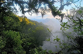 We could have stayed there forever but dawn was breaking and the best vantage point was a little further up, from where we could enjoy a panoramic view of the valley below. It was glorious a peeping sun banishing the darkness shades of white and yellow and pink splashing the horizon like brushstrokes by a wildly creative artist. Solitary, tentative bird calls gradually rising to a symphonic dawn chorus crescendo. The forest below slowly coming into focus and around us soft wisps of steam rising and disappearing into the strengthening light. An unforgettable daybreak.