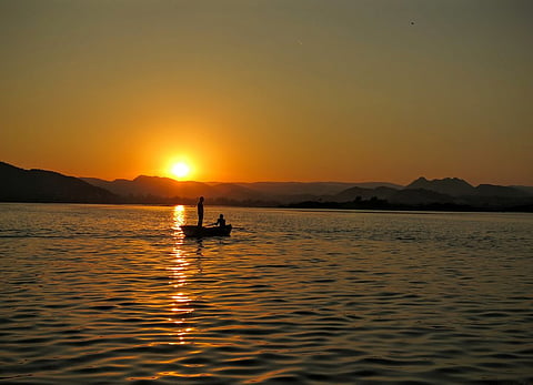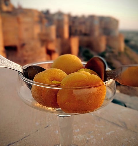 I sipped on chai and watched the sun float above the ramparts of Jaipurs Nahargarh Fort. Clouds shrouded the yellow ball as it inched towards the Aravallis, moulding it into shapes even the moon cannot emulate a smudged bindi, a face in profile, and fantastic forms without names. And then it vanished behind a veil, much like a murti being dressed at a temple. When it re-emerged, its transformation appeared as substantial as the temple idol. I put my cup to my lips, it was empty. And then the sun plunged behind the hills.