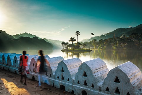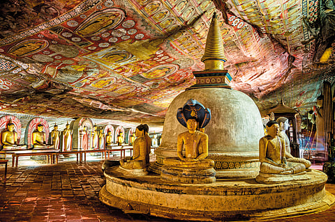 Our next stop was one of the most popular hill stations in Sri LankaKandy. Here, at the highest view point of the town, the last rays of the sun fell on the glistening water of Lake Kandy and the swans swimming in it, as lights flickered on in the distance one after the other, like stars turning up at dusk. After a cultural performance in the town hall, we bid adieu to Kandy and set off for Nuwara Eliya. But, on the way, we had another climba flight of 400 stairsto see another UNESCO World Heritage Site, the Dambulla Cave Temples and the Golden Temple. Sombre statues of Buddha in all the five temples here are steeped in artistic brilliance and showcase the historic and geographic confluence of Southeast Asia.