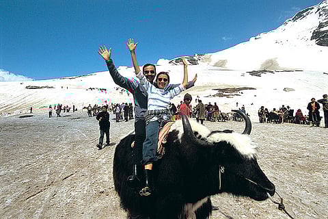 Sheroo looks distinctly unhappy as he flicks his grey mane and shifts his feet in the crusty snow. He stands at the edge of a sliver of road, swishing his tail at the inert Qualises and Sumos, snorting at the holidaymakers who are negotiating with his owner&mdasha young man with rosy cheeks and a rosier nose&mdashfor a ride up the mountains. &ldquoNo, no, you will not fall,&rdquo the youth tells coated, booted mothers and fathers, demonstrating his sincerity by slipping and nearly tumbling down the steep slope. Sheroo flares his nostrils at this bit of clumsiness even as his master gets up with a sheepish grin, straightens his cap and pulls down his jacket, eager to persist with his spiel.