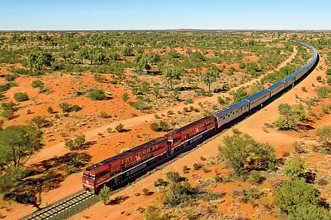 The Ghan When a country covers the entire continent, can epic railway journeys be far behind Regarded as one of the world&rsquos greatest rail jour­neys, the Ghan accesses parts of Australia no other holiday can come close to. The Ghan travels 2,979 kilo­metres from the south to the north, between Adelaide and Darwin on the Adelaide&ndashDarwin railway for three nights and four days through the fiery red centre of Australia, passing epic landscapes en route. Operated by Great Southern Rail, it takes 54 hours to travel, with a four-hour stopover in Alice Springs. As for the name, it&rsquos a version of its previous nickname, the Afghan Express