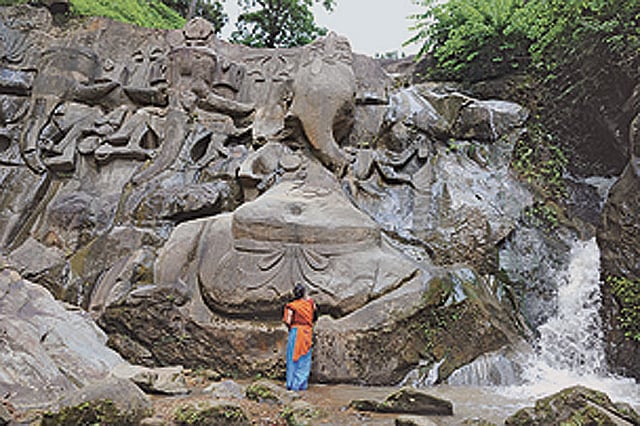 In northern Tri­pura lies a stunning site of great art-historical impor­tance, the bas-reliefs of Unakoti. A small local stream called the Chawra runs through a system of rocky outcrops, where, over a period of time from roughly the 8th to the 12th centuries CE, successive cultures had carved grace­ful images into the rocks, some of which are gigan­tic. The most famous bas-reliefs are the massive face-sculptures of an anonymous deity by a se­ries of waterfalls, as well as graceful sculptures of dancing women, hunting archers, animals, beautiful motif designs, a beautiful Vishnu and even a group of giant war-like Ganeshas. Located about 140km north of Agartala near Kailasahar.