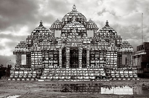 Delhi-born artist Reena Kallat works with a variety of materials. Kallat found her inspiration to work with salt in 2013 while travelling to Korea. Salt forms an integral part of many of her works with her travelling inspiring her to use more of such unconventional objects. She also depicts lost monuments and reinscribes them using the state's tools to display bodies that reside at its margin.