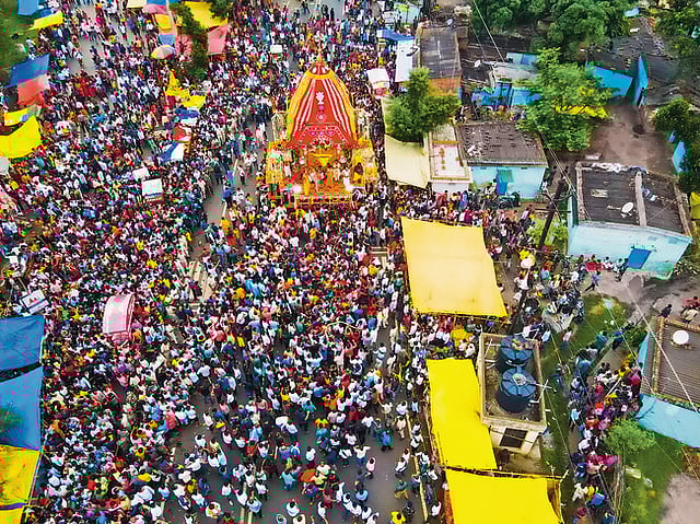 To ensure a peaceful Rath Yatra from the Jagannath temple to mausibadi, some 1,000 police officers, magistrates, and an equal number of volunteers were stationed in the city. In addition to the police officers stationed at the event, drones and watchtowers were used to monitor the audience. For the purpose of limiting traffic and pedestrian movement, more than 14 drop gates were built around the temple.