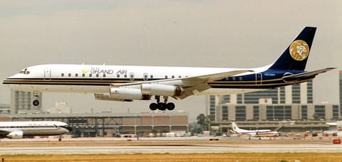 Inaugurated in 1987, MGM Grand Air was a first-class-only, ultra-luxury airline that initially served a single route using lavish Boeing 727 and Douglas DC-8 aircrafts. The maximum passenger capacity per flight was 33, even though the plane could accommodate 100 or more passengers. The airline provided an optional door-to-door car service and guaranteed no lines, no check-ins, and no waiting for luggage. MGM Grand Air opened more routes after being popular with celebrities and the very wealthy initially, but it needed help filling all 33 seats on each aircraft. As the use of private aircraft increased in the 1990s, operations slowed. In 1995, the airline was sold, and it shut down entirely in 2008.