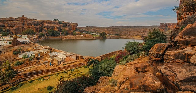 At the mouth of a ravine between two rocky hills, the cave temples of Badami overlook the man-made Agastya lake. The place, earlier known as Vatapi, is situated around 150 km from the town of Belgaum and about 510 km from Bengaluru, and about 20 km from Pattadakal, a UNESCO world heritage site. Closeby is the 5th century Bhoothnath temple, Badami Fort and the Archaeological Museum.