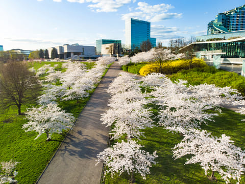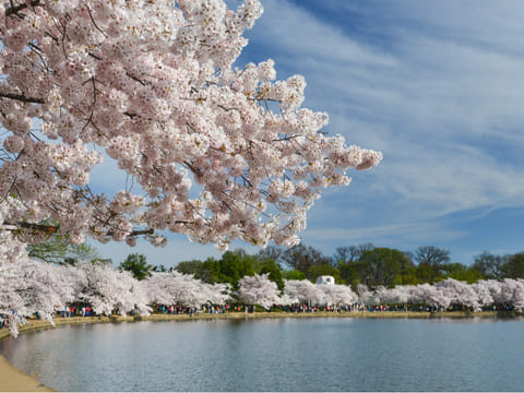Spring The time of year when the capital of the United States appears enchantingly pink. The gorgeous Japanese blossoms mirrored over the Tidal Basin create an unusually romantic atmosphere in the city. The Skagit Valley of Washington is another place one can experience the feeling of perfect spring amongst a vivid range of flamboyant Tulips.