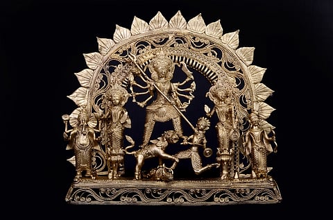 Dokra, or dhokra, is a traditional art form that is found in the states of Odisha, West Bengal, Jharkhand and Chattisgarh. The method of lost-wax metal casting is an ancient craft in India and dates back about 5,000 years. One of the earliest artefacts created by this method is the famous dancing girl of Mohenjo-Daro.