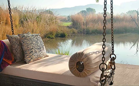 When I was walking out of my luxurious thatched-roof cottage on my first day at Khem Villas, I spotted a langur partially hidden in the copse enjoying a shower under the sprinkler. The second day there, after coming back from the safari, I saw a jungle cat running away from the dining area and diving into the bushes. On my last evening, I sat at the bar area reading a book while a kingfisher dove into the water of the pond in front of me, and a red-tailed bulbul tried to steal a few sips of tea from a cup that had been left unguarded. The staff showed me a video of a tigress named Lightning sitting near the pond in broad daylight as the guests of the camp watched her breathlessly from afar. Machli, the most photographed tigress of Ranthambore, spent her last days strolling around the property as well. If its a raw jungle experience youre looking for, with the added flavour of pain-staking eco-tourism initiatives, then Khem Villas, a beautiful property situated close to the Ranthambore National Park in Rajasthan, should definitely be on your list.