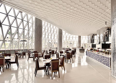 I knew exactly what I was in for when I read Traditional Bengali Welcome in my itinerary. Sure enough, as soon as I was through the door, they plonked a topor, the conical headgear that every Bengali groom has to suffer at his wedding, on my head. It was an auspicious start.On cue, I found the coffee table in my room adorned withalbeit briefly, since I promptly demolished itsome of the best jolbhora sandesh I have ever encountered. I later discovered that they have an in-house guy just to make the sweets. It makes sense, considering the number of weddings they have hosted since they opened. For newbies, a name card proffered the following explanation of this remarkable Bengali invention An essential component of Bengali hospitality that literally means filled with water, where two elements, namely, chana, a cottage cheese typical to Bengal, and rose water, which is in its core, combine to give an exhilarating experience. I can assure you this description is spot on. Burp.