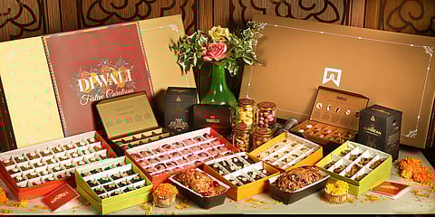 Hyatt Regency, Delhi is offering specially curated Diwali hampers. These hampers bring together a range of carefully selected assortments, including Indian sweets, contemporary confectionaries and dry fruits in limited edition boxes that are both exquisite and celebratory. The Gourmet box of 4 consists of dry mango, raspberry pistachio friande, honey date almond cake and pistachio macaroons whereas the Gourmet box of 6 contains honey sesame truffle, a white chocolate rocher, dry apricot, biscotti, pistachio truffle, raspberry macaroon.