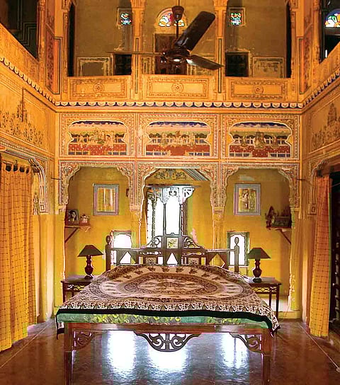 Located on the corridor through which trading caravans moved freely between Delhi and the ports of Gujarat, Shekhawati was a prosperous region in the 19th century. It was also an important link on the Southern Silk Route that connected West Asia with China. The thakurs and the business community had a symbiotic relationship the thakurs protected the trade from brigands in lieu of which the merchants paid a security fee. Little wonder then, that the entrepreneurs of this region amassed great fortunes until the rise of the British Empire, when the dominance of its imported goods destroyed this trade.