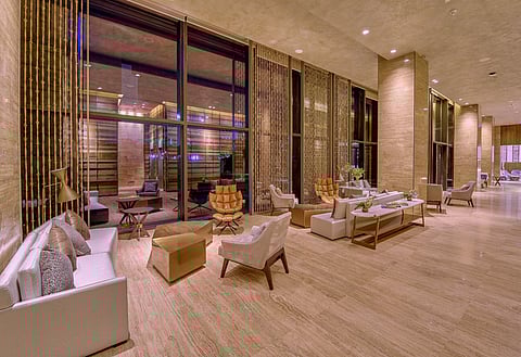 Whitefield, a neighbourhood established in the late 1800s by the Anglo Indians. It is now a major suburb. Smaller lanes, more vehicles and tall buildings have replaced the quaint countryside. And just like that my driver announced our arrival at The Den Hotel, Bengaluru. The hotelI looked up, took five steps back and looked up againstood tall. Arguably the tallest building in the area, The Den Bengaluru was shiny and imposing. A building with full glass facade,it was a pleasing sight to see. The door opened to a spacious lobby, all bright and dazzling. The Den is a luxury business hotel no doubt but it sure had a touch of traditional Indian art that gave an interesting twist to its contemporary concept. Curious geometric patterns caught my eye as I walked past the lobby, lift, all the way up to my room on the 7th floor.