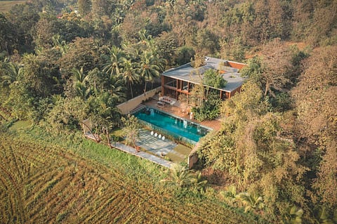 When I entered The Glass Villa, I was immediately transfixed in the open courtyard. Much like ancestral homes of our past, teak trees stood tall against a clear view of a blue sky. A soft tune was floating in, of chimes and soothing music and I felt a sense of connectedness wash over me. Aditya Gupta, the founder of The Rug Republic, who has acquired the property, had a well curated playlist. As we spoke he told me why he was instinctively drawn to the property. &ldquoThis is for a different experience of Goa&rdquo, he said, &ldquoAway from the beaches and the parties.&rdquo He was right, this was about oneness and introspection, and Aditya goes an extra mile in bringing the feeling that he shares with the villa into the pieces he collects for the property.
