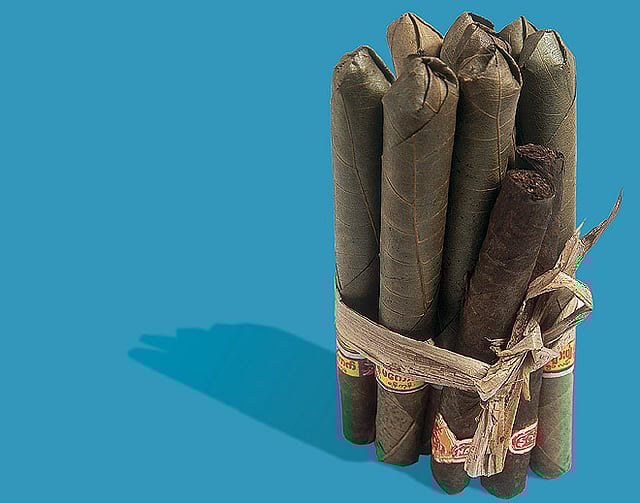 One of the joys of travelling in Myanmar is that you get to smoke many of their lovely green cheroots without being made to feel guilty, or making unseemly dents in your wallet. All public places are thick with smoke curling up from such unlikely sources as little old ladies and children. Everybody, and I mean everybody, smokes cheroots in Myanmar. Cheroots are made of dried thanat leaves, rolled around various proportions of crushed tobacco and dried wood. One end is open for lighting, the other rolled shut around a filter of dry corn husks. Women sit cross-legged in thatch roofed, open-walled shelters, gossiping as their fingers fly, making cheroots out of a mess of leaves and crumbly tobacco. They cut the leaf to size, roll in the tobacco and filter, and bind it with thread or brand labels all in a few seconds. The late Burmese writer Daw Khin Myo Chit describes the ritualistic cheroot-making of her grandmother&rsquos day women rolled their own cheroots with thanat leaves, soft dried wood seasoned with tamarind pulp, crushed tobacco, and a skein of silk or cotton thread from the family loom. Today, it&rsquos a labour-intensive, low yield, cottage industry. One woman makes 1000 cheroots a day, for which she will earn 200 kyat (US$ 0.70 or Rs 46.42). Two cheroots sell on the market for under 5 kyat (under two US cents, or Rs1.33). Cheroots come in all shapes and sizes, from rolls only slightly bigger than a cigarette, to elegant long white cheroots favoured by the old aristocracy. They have various potencies and colours.