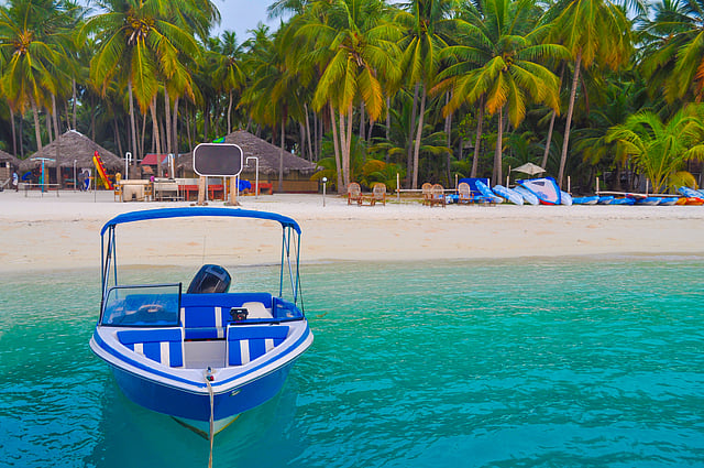 Neil Island, also known as Shaheed Dweep, is a part of the Andaman and Nicobar Islands. It's located in the Ritchie's Archipelago, in the Bay of Bengal, 36 km northeast of Port Blair. Major attractions include Natural Bridge, Bharatpur Beach, Laxmanpur Beach, and snorkelling opportunities.