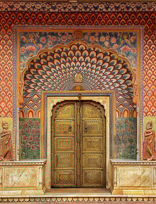 The City Palace of Maharaja Sawai Jai Singh II blends Mughal and Rajput styles. Still inhabited by the royal family, it includes the Mubarak Mahal, now a museum exhibiting royal attire, and the Maharani's Palace, showcasing ancient weaponry and paintings.